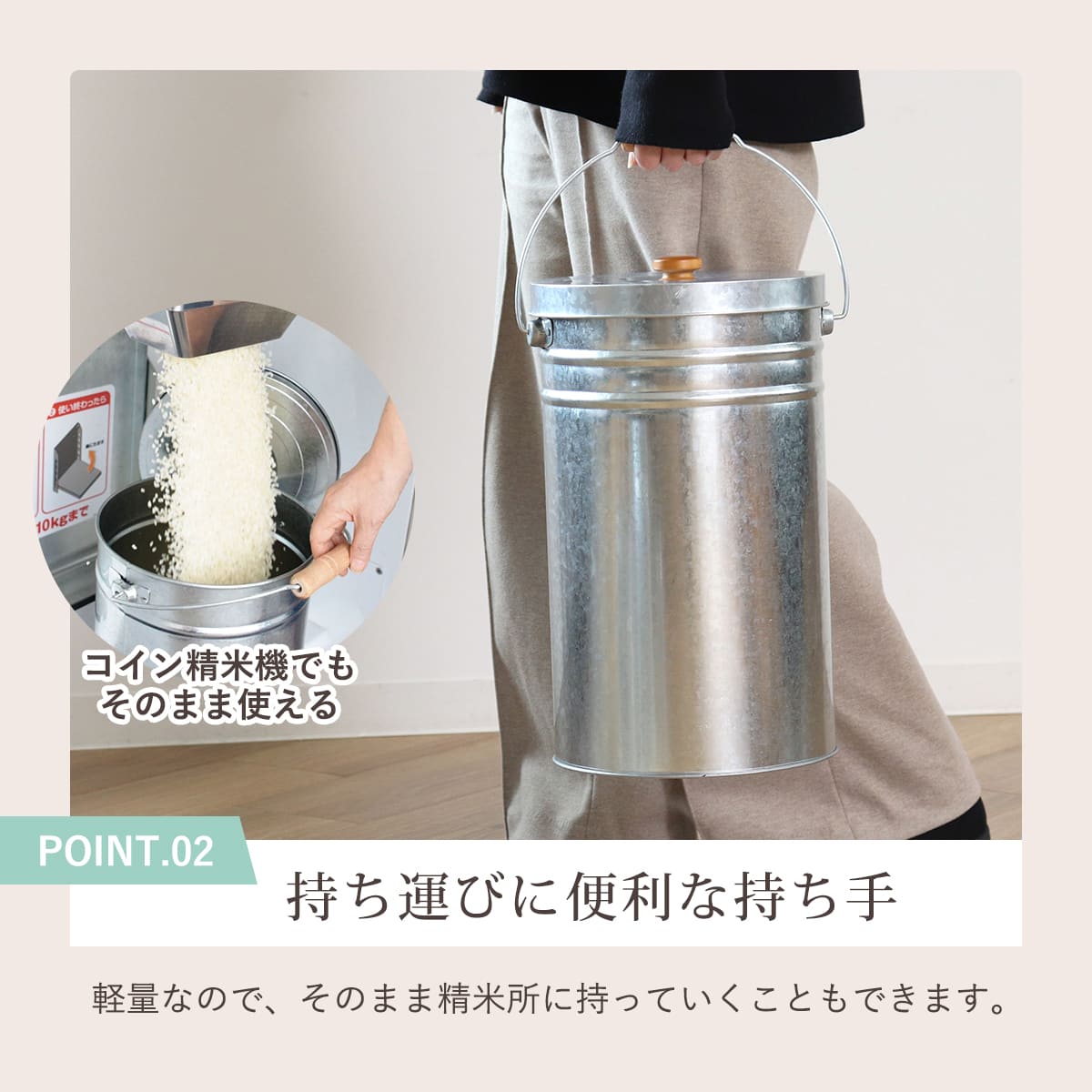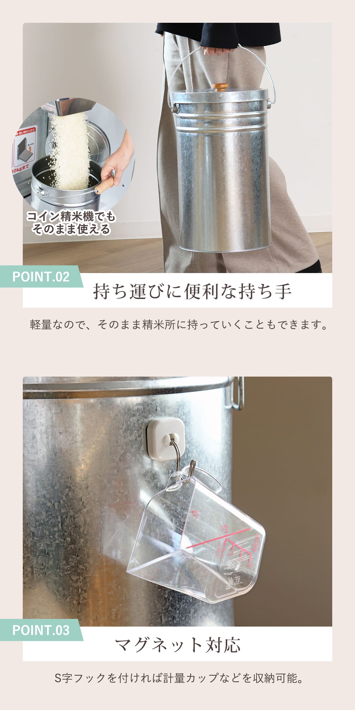 | 容量 | 約 15L 適正容量:お米収納容量:約 12kg |