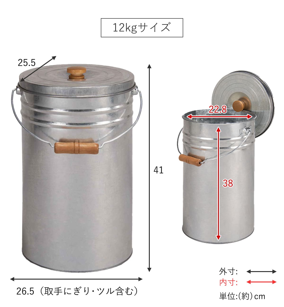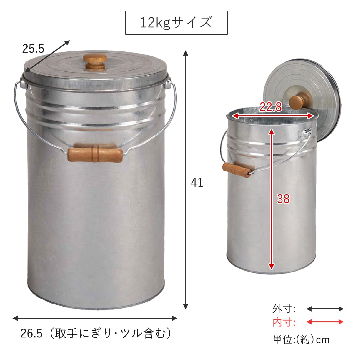 | サイズ | 外寸:約 幅26.5×奥行25.5×高さ41(cm) 内寸:約 高さ38(cm) 内径:約 22.8(cm) |