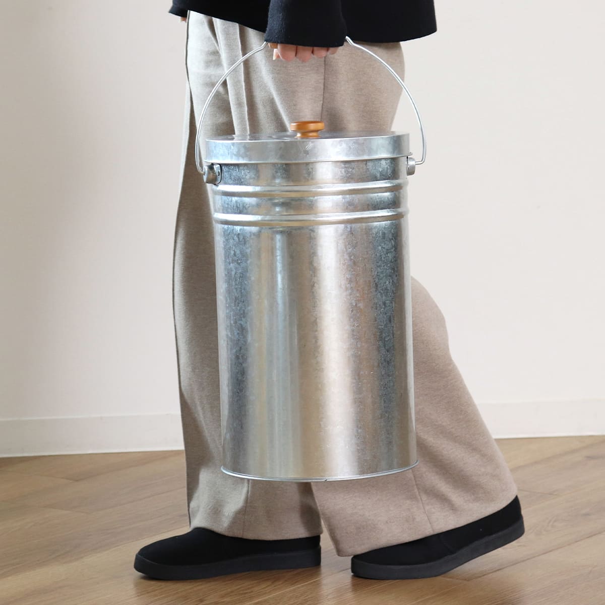 | 材質 | 本体・フタ・底材質:亜鉛メッキ鋼板(花柄トタン) つまみ(フタ):木製 取手にぎり:木製 ツル:鉄線 金具:鉄板 |