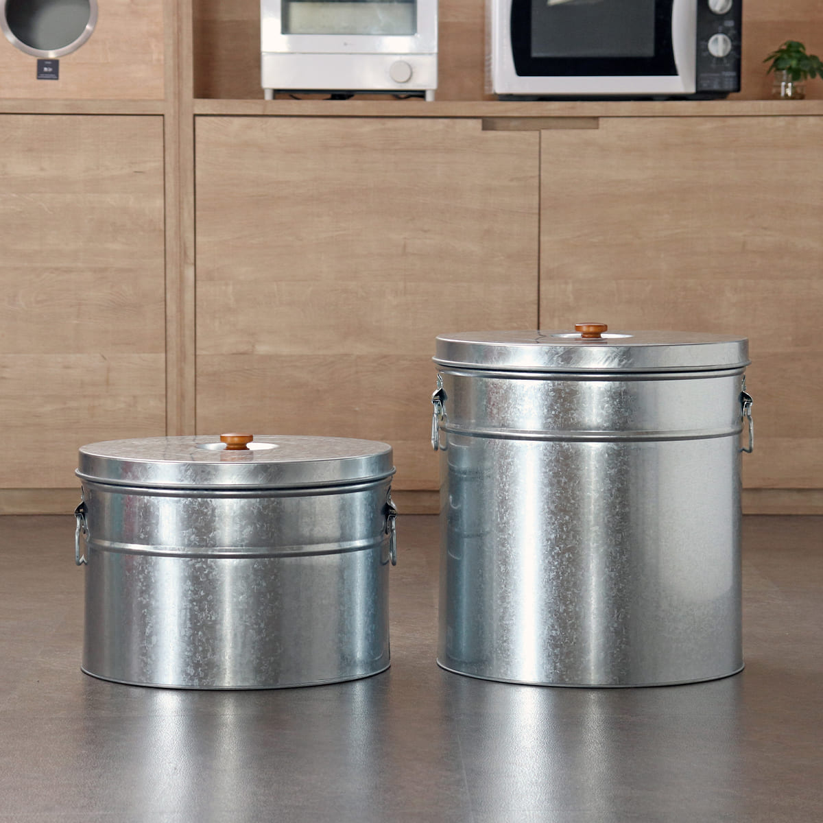 米びつ 30kg 丸型 トタン 袋のまま ( 米櫃 ブリキ 缶 ライスボックス ライスストッカー ペットフードストッカー 30キロ 日本製 米ストッカー お米保存 大容量 袋ごと そのまま ペットフード ドッグフード おしゃれ レトロ )