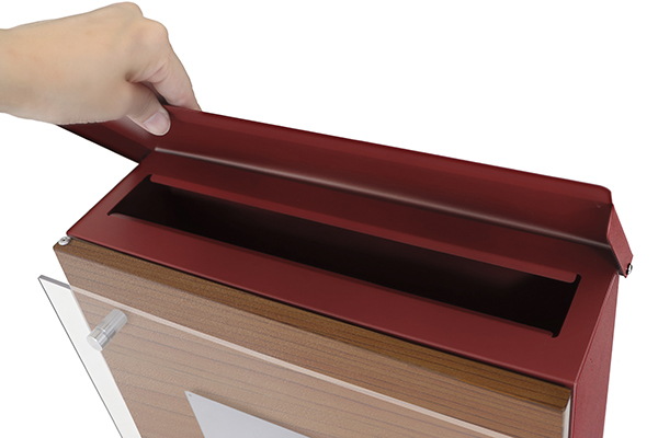 フタを開くと大きな投函口が現れます。投函口が隠れていることですっきり見えるだけでなく、雨の侵入も防ぎます。