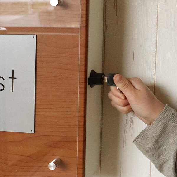 プレートはマグネット式なので自由に取り外しができます。付属のアルファベットシールで文字を入れて、表札としてもご使用いただけます。
