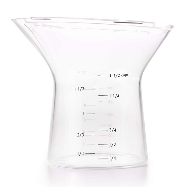 ドレッシングやソース作りの際に目安になる目盛り付きです。カップ表示と最大約350mlのml表示で使い勝手も抜群です。