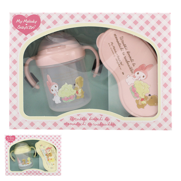 在庫限り 離乳食セット 食器 日本製 スプーン付 マイメロディ スージー・ズー ギフトセット ( 離乳食 弁当箱 ストローマグ キャラクター マイメロ 離乳食食器 仕切り 食器セット 箱入り スプーン コップ ベビー 赤ちゃん ) 【 イエロー 】