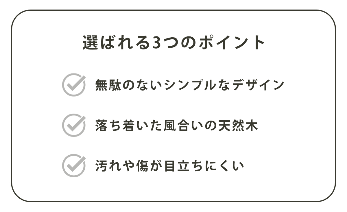 落ち着きのある天然木の質感が魅力です。自然素材ならではのぬくもりを感じられます。