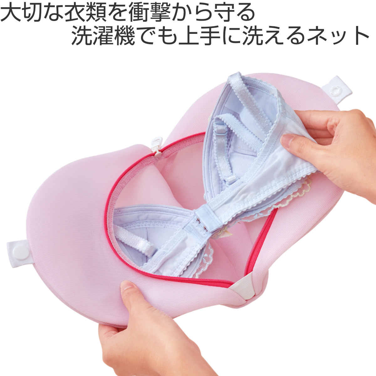 左右のカップをそれぞれ包み込むポケット構造が、型くずれを防ぎながらやさしく洗い上げます。カップを裏返したり折りたたむ必要がなく、そのまま入れるだけで洗えます。