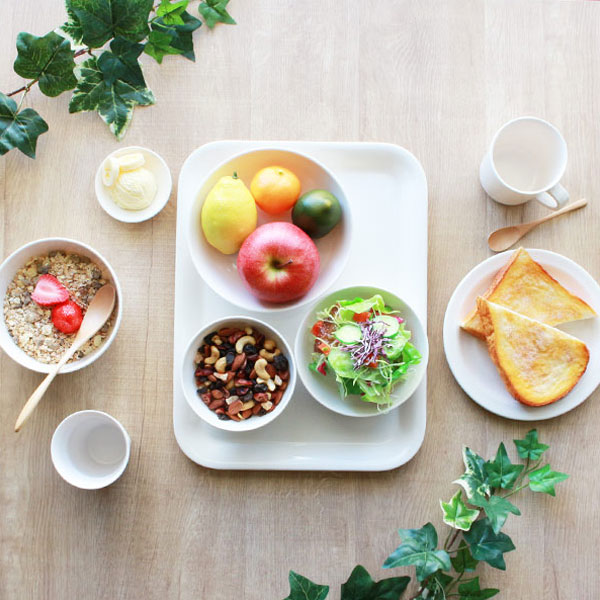 軽めの朝食やランチ、お子様用にも扱いやすいサイズ。3つの仕切りがあり、主菜と副菜をバランスよく盛り付けることができます。1枚で食卓に出せるので、洗い物も少なく、忙しいときに重宝します。