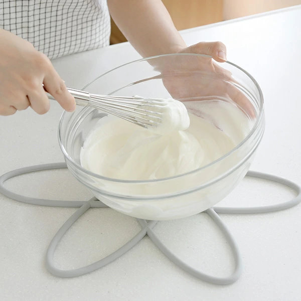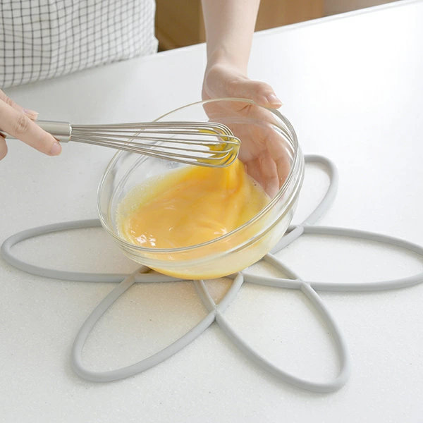 伸縮性・耐熱性があるため、鍋敷きとしても使え、熱いお皿やお鍋を置いてもテーブルを傷つけません。また、ボウルを置いてミキシングすれば、すべり止めシートとしてもお使い頂けます。