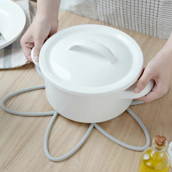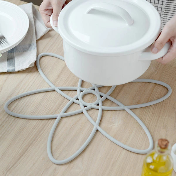 ●伸縮性・耐熱性があるため、鍋敷きとしても使え、熱いお皿やお鍋を置いてもテーブルを傷つけません。