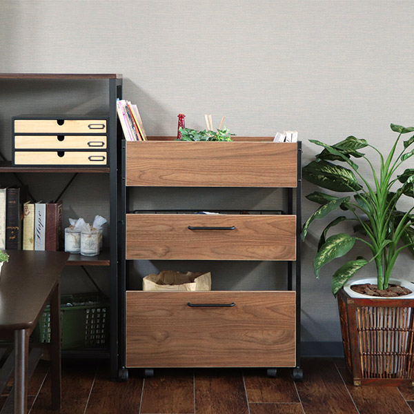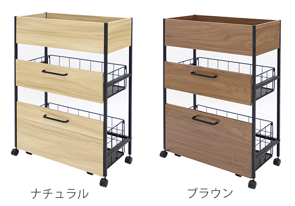 ●オープンスペースと2段の引出しを組み合わせた、マルチに活躍する収納力抜群のワゴンです。
