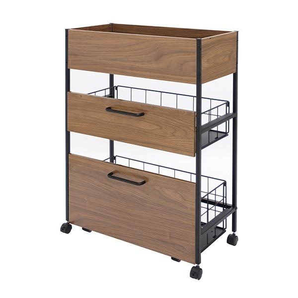 キッチンワゴン ストッカー 北欧風 スチールフレーム 幅65cm ( キッチンラック キッチン 収納 ラック キャスター付き スチールラック アイアンフレーム キッチン収納 サイドラック )【 ブラウン 】