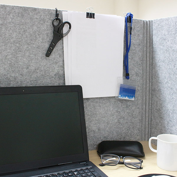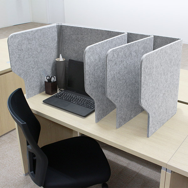 人が不快に感じる音を吸音する効果のある素材を使用しているので、話し声やパソコンキーボードのタッチ音を軽減します。高さ50cmの顔が隠れる高さなので、視線を感じることなく仕事に集中でき、セキュリティー対策としてもおすすめです。