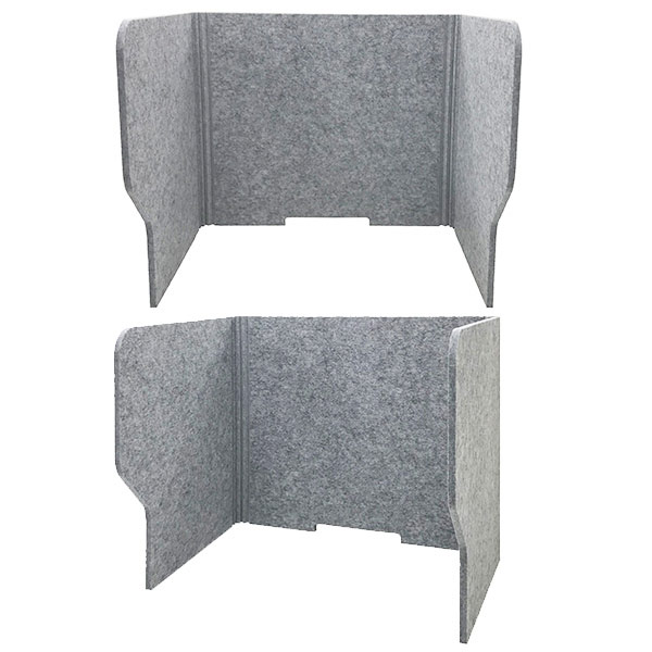 フェルメノンのウイルスガードスタンドは厚さ12mmの高密度な硬質吸音フェルトボード。マスクより繊維が細かく高密度なので、飛沫ガードとして最適!対面レイアウトの職場でも安心して仕事ができます。