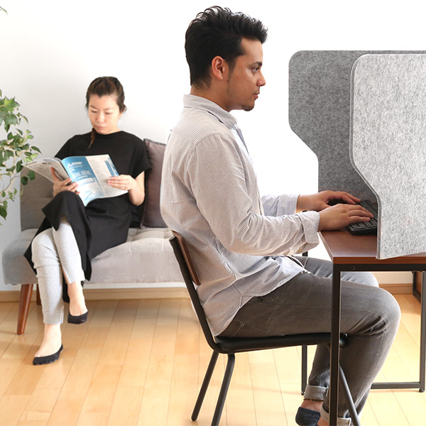 リビングの一角などのデッドスペースや限られた空間の中で、ワークスペースを確保するために役立つデスクパーテーションです。デスクの上に広げて立てるだけの簡単設置!あっという間に集中ブースが出来上がります。パーテーション越しに家族の気配を感じ取りつつ、作業や仕事に集中できます。
