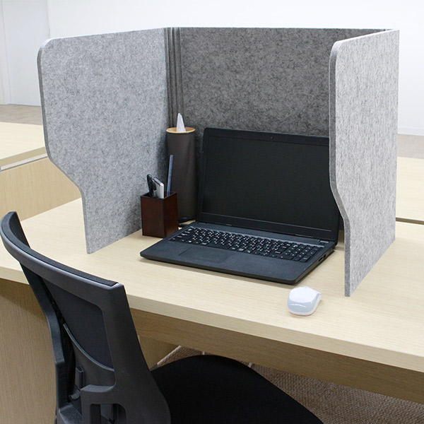 人が不快に感じる音を吸音する効果のある素材を使用しているので、話し声やパソコンキーボードのタッチ音を軽減します。高さ50cmの顔が隠れる高さなので、視線を感じることなく仕事に集中でき、セキュリティー対策としてもおすすめです。