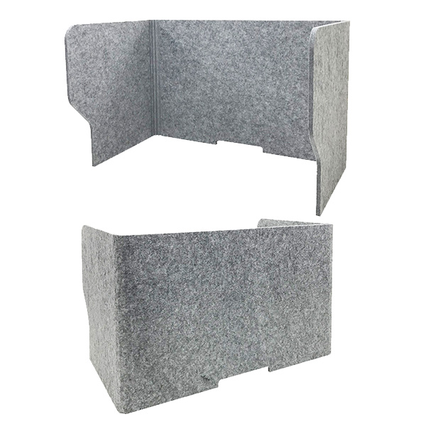 フェルメノンのウイルスガードスタンドは厚さ12mmの高密度な硬質吸音フェルトボード。マスクより繊維が細かく高密度なので、飛沫ガードとして最適!対面レイアウトの職場でも安心して仕事ができます。