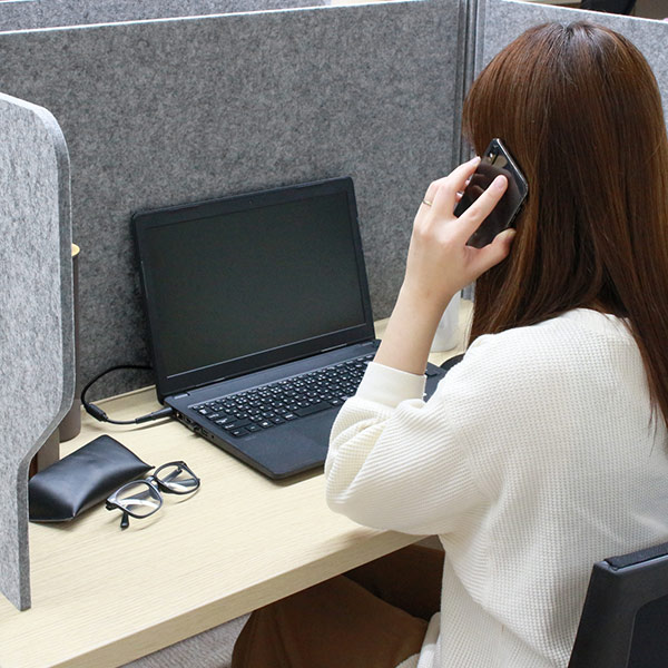 人が不快に感じる音を吸音する効果のある素材を使用しているので、話し声やパソコンキーボードのタッチ音を軽減します。高さ50cmの顔が隠れる高さなので、視線を感じることなく仕事に集中でき、セキュリティー対策としてもおすすめです。