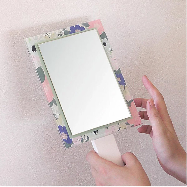 ミラー 3WAY ウォールミラー スタンドミラー 卓上 ハンドミラー 手鏡 鏡 かがみ 花柄 角型 長方形 ( 卓上ミラー メイクミラー コンパクトミラー 化粧 デスクミラー テーブルミラー メイク コスメ おしゃれ カガミ 化粧直し ) 【ピンク】