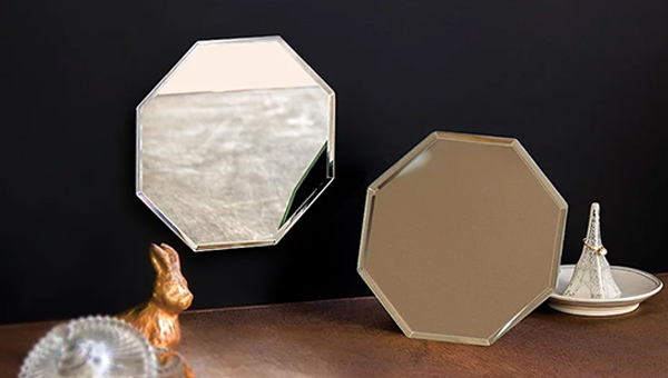 手作業で面取りされた曲線エッジが美しいハンドメイドミラーです。エレガントな装いでインテリアの邪魔をしません。八角ミラーは幸運を引き寄せるといわれる風水のラッキーアイテムです。