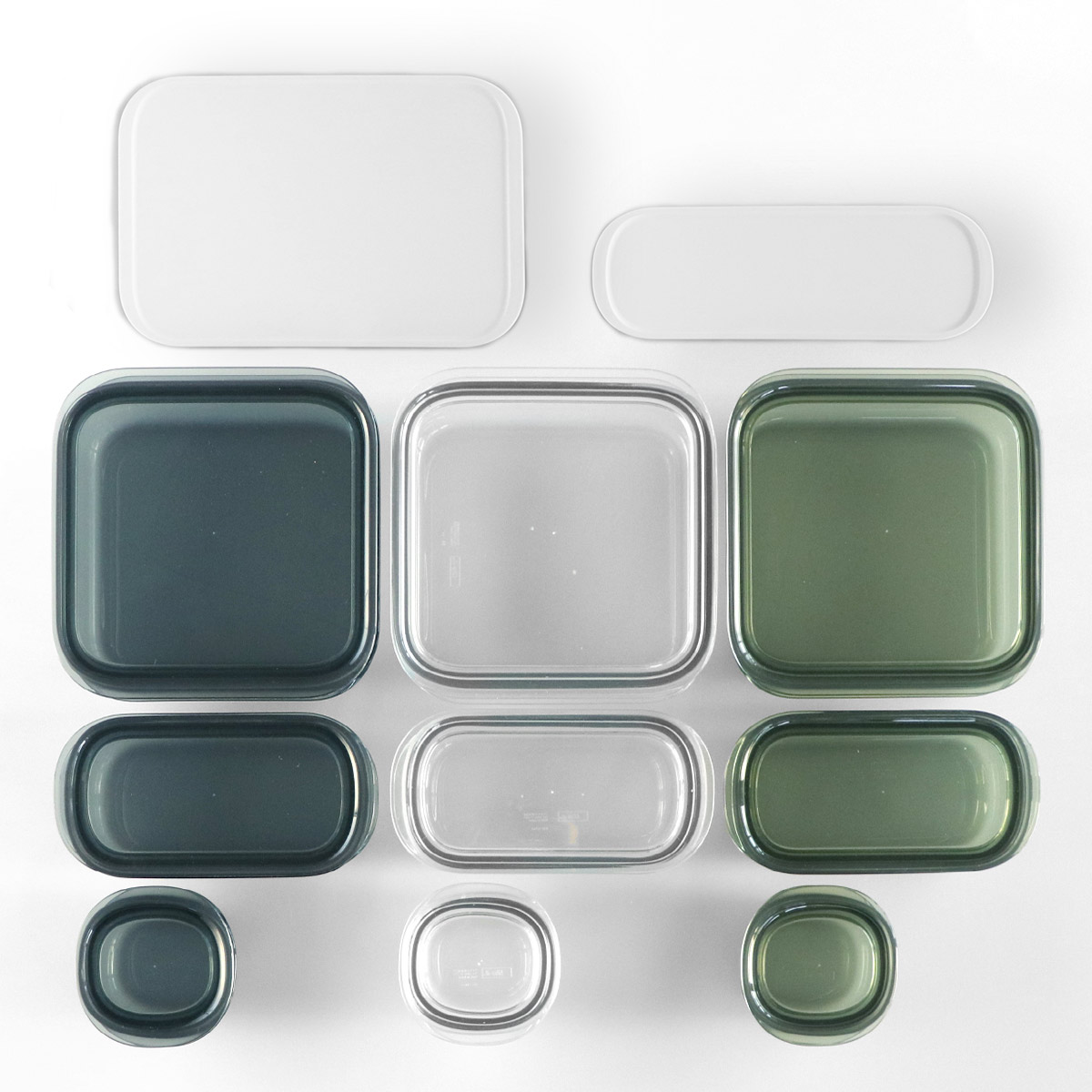 トレーにはセットの保存容器がちょうど収まります。トレーに保存容器をのせておけば、冷蔵庫からまとめて取り出したり、食卓に並べたりが手軽にできます。また、冷蔵庫内の空間を無駄なく有効活用でき、すっきりと整理整頓ができます。