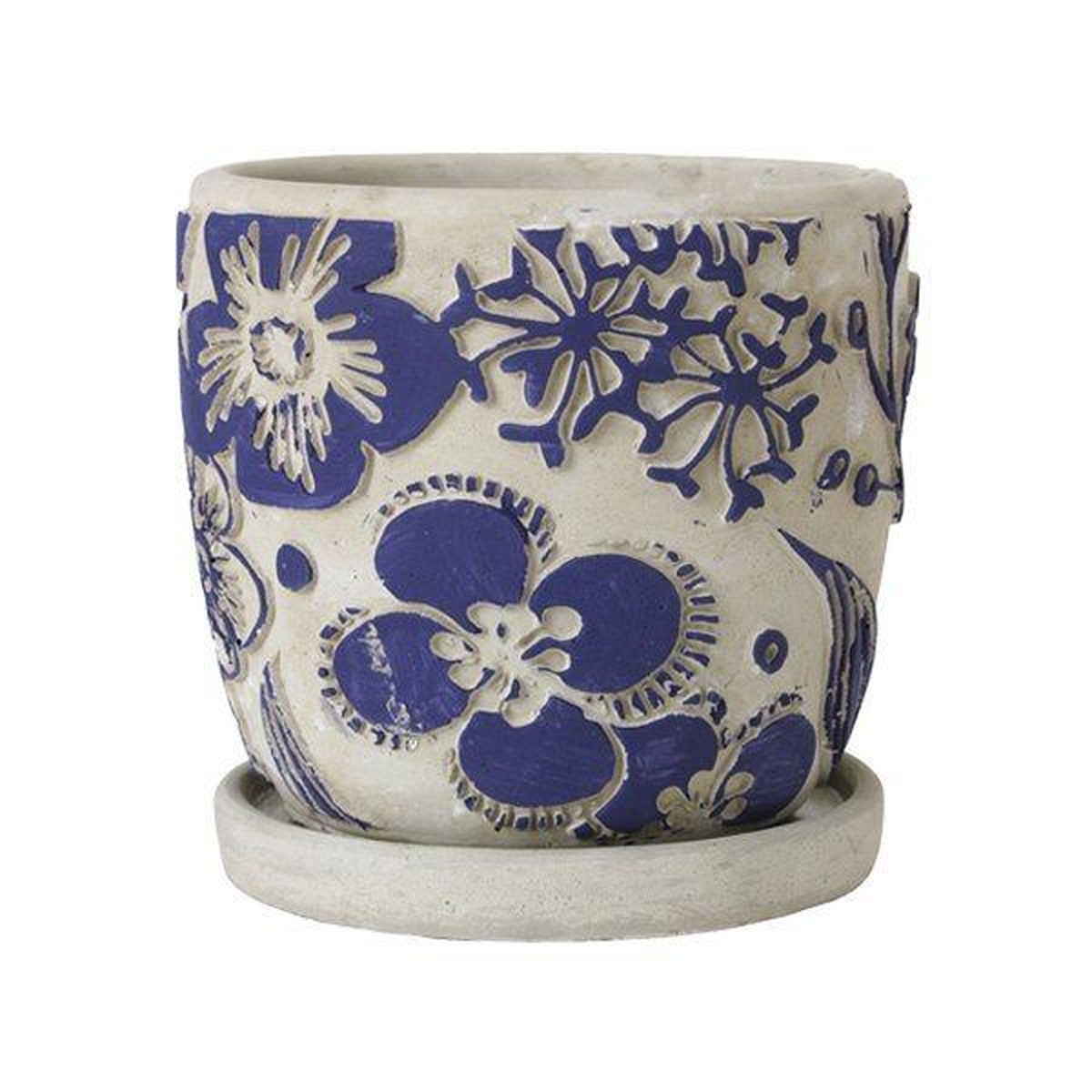 植木鉢 レリーフプランター Sサイズ 3号 ( 植木鉢 フラワーポット 鉢植え おしゃれ ミニポット 玄関 リビング 庭 ガーデン 園芸 受け皿付き 底穴 セメントポット 窓際 窓辺 ) 【ネイビー】