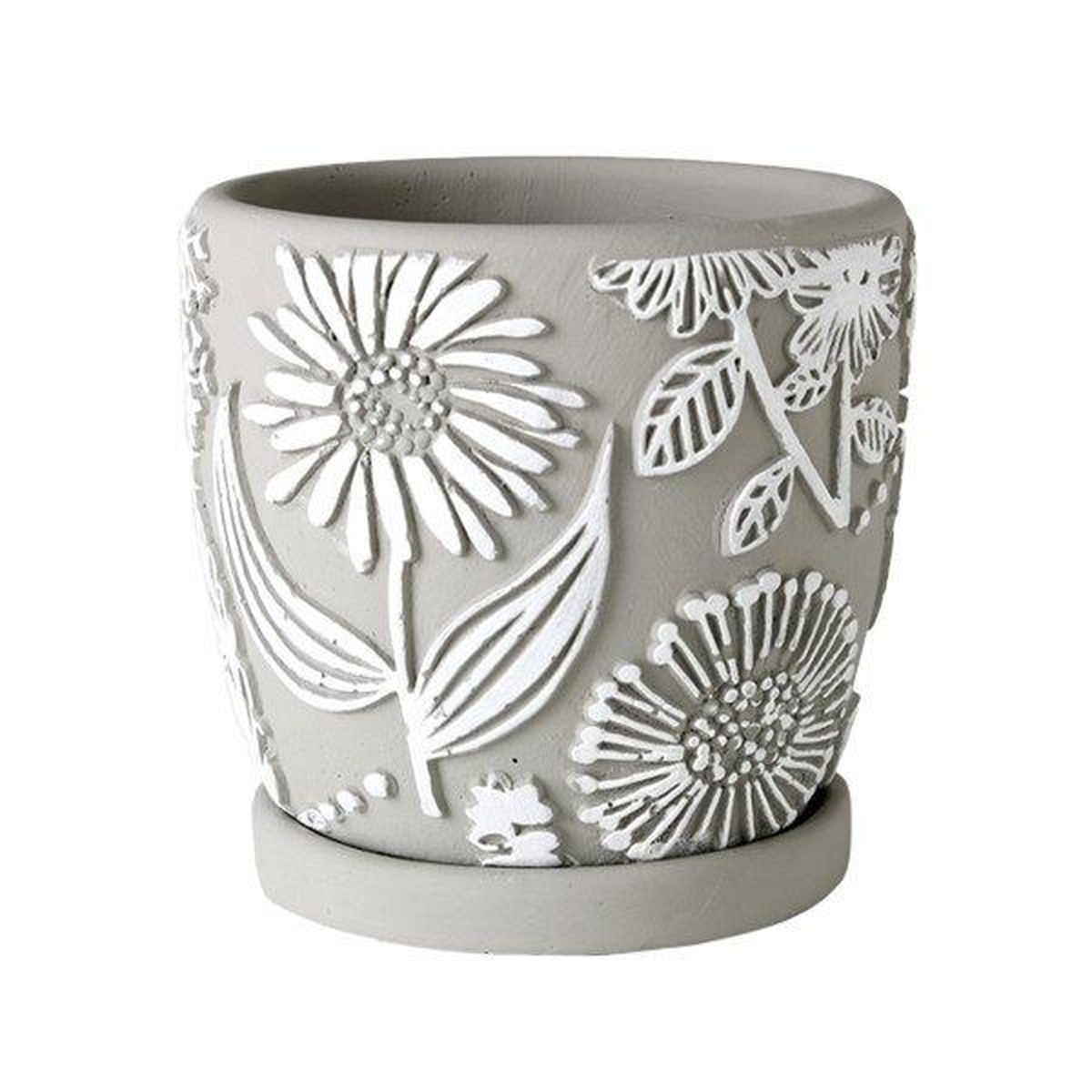 植木鉢 レリーフプランター Sサイズ 3号 ( 植木鉢 フラワーポット 鉢植え おしゃれ ミニポット 玄関 リビング 庭 ガーデン 園芸 受け皿付き 底穴 セメントポット 窓際 窓辺 ) 【グレー】