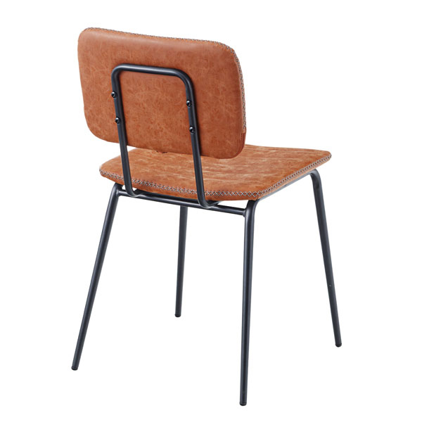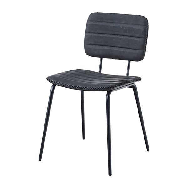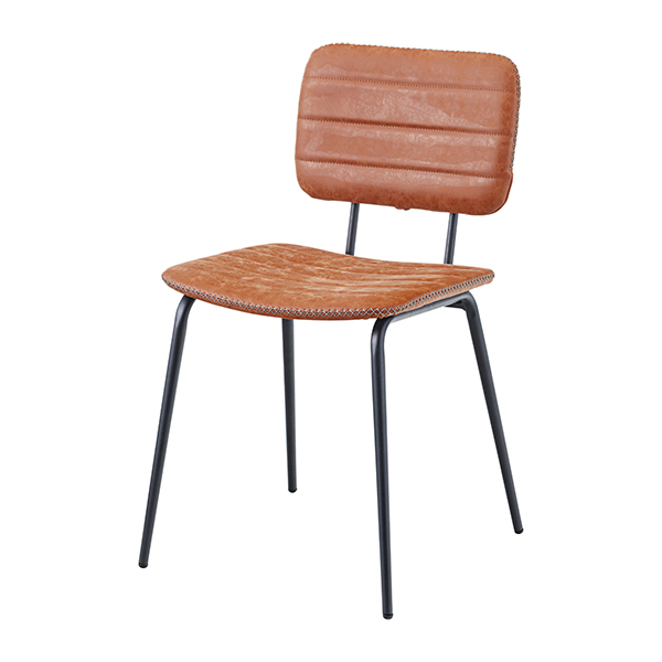 チェアの生地にはどこか懐かしさを感じさせるソフトレザーが使用されています。ユーズド感溢れるヴィンテージ調の生地が使用されたチェアは、脚部に工業製品のような重厚で落ち着いた色味のスチールが使用されています。