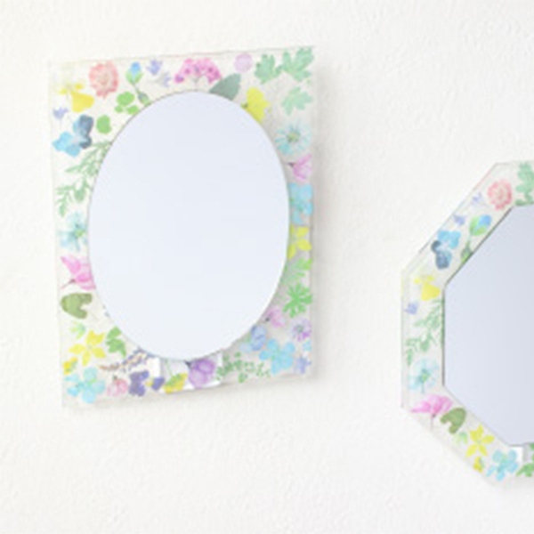 押し花風の花々が散りばめられていて、お部屋の雰囲気を華やかにしてくれます。面取りされた角が高級感を演出します。