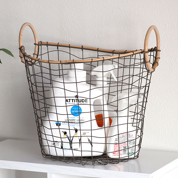 ワイヤーバスケットは、「見せる収納」としてお部屋に置くだけで様になります。散らばるアイテムを無造作に入れても見栄えし、収納スペースが少ないお部屋の収納兼インテリアとして重宝します。