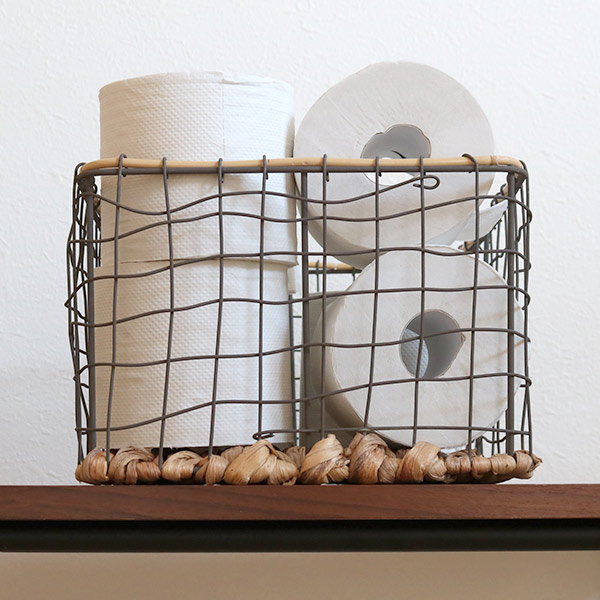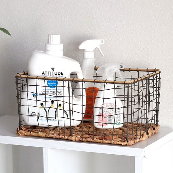 ワイヤーバスケットは、「見せる収納」としてお部屋に置くだけで様になります。散らばるアイテムを無造作に入れても見栄えし、収納スペースが少ないお部屋の収納兼インテリアとして重宝します。