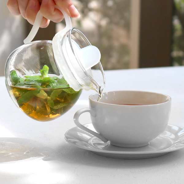 1~2人分のお茶を淹れるのにちょうど良いサイズのティーポットです。ガラス製で中身が見えるので、お茶を淹れている間も目で見て楽しむことができます。ハーブティーやお好きなフルーツを入れてフルーツティーを作れば、香りも楽しめるティータイムになります。