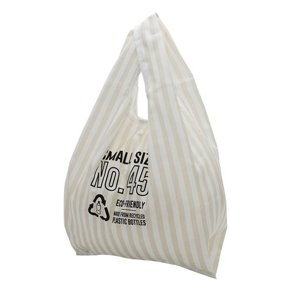 回収ペットボトルをリサイクルした生地「R-PET」を使用したエコバッグです。環境負荷を大幅に減らせる、とてもエコな素材。牛乳パック(1L)なら6本前後入る、レジ袋45号相当の使いやすいサイズです。
