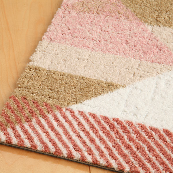 50cm×50cmサイズのタイル形状なのでポンポンと置くだけで設置も簡単。1枚もののラグとは違い、部分的に取り替え可能で色柄を自由に組み合わせて楽しんでいただけます。