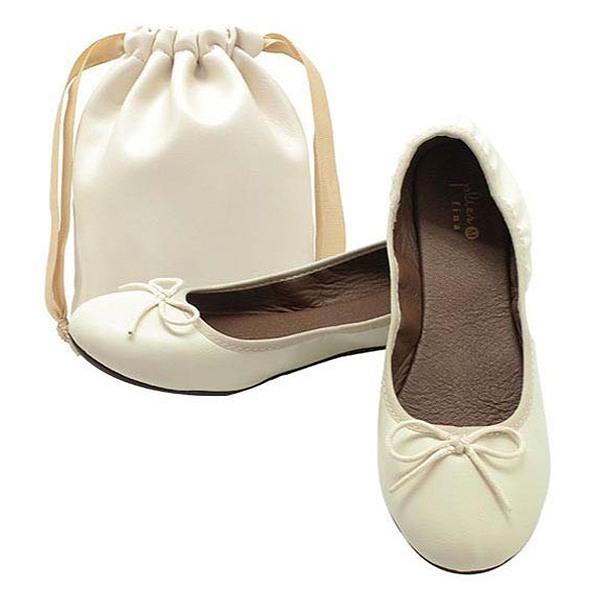 携帯スリッパ レ プリエ フィナ リボン Sサイズ 約22.0cm~23.5cm ( 折りたたみ レディース おしゃれ ルームシューズ スリッパ 携帯シューズ 収納ポーチ付き 携帯 入学式 卒業式 入園式 卒園式 滑り止め シンプル )【 アイボリー 】
