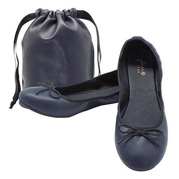 携帯スリッパ レ プリエ フィナ リボン Sサイズ 約22.0cm~23.5cm ( 折りたたみ レディース おしゃれ ルームシューズ スリッパ 携帯シューズ 収納ポーチ付き 携帯 入学式 卒業式 入園式 卒園式 滑り止め シンプル )【 ネイビー 】
