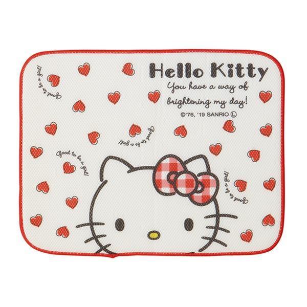 水切りマット ハローキティ Red Heart マイクロファイバー生地 ループ付き ( 吸水マット 食器乾燥マット ドライマット 水切り用マット シンクマット ディッシュマット 速乾 吸水 食器 乾燥 水切り メッシュ地 HELLO KITTY サンリオ )