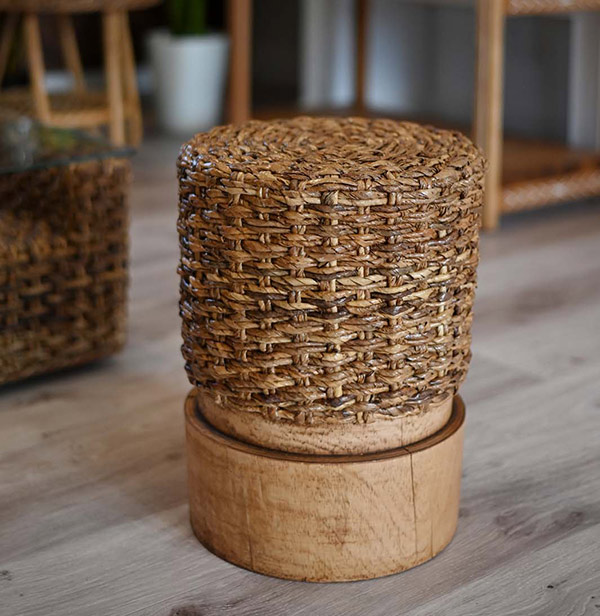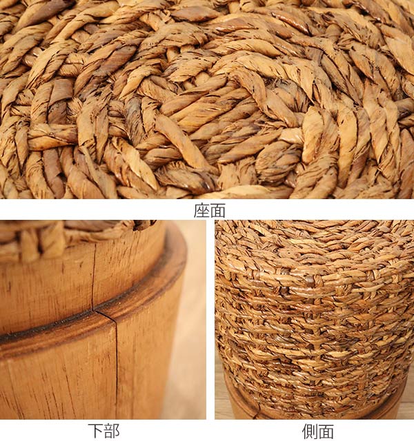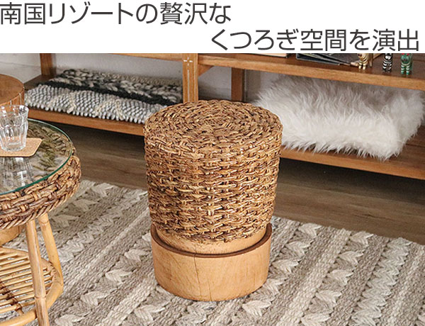 スツール ハワイアンリゾート風 天然木 バナナリーフ材 Ohana 座面高40cm ( チェア チェアー 椅子 イス 完成品 座面 丸 丸い バナナリーフ リゾート テラス ハワイアン 南国 アジアン エスニック ダイニング 食卓 )