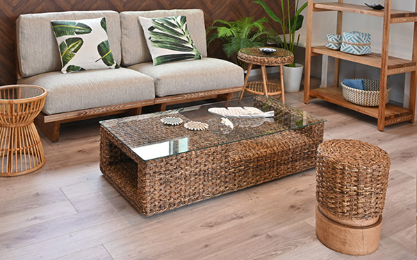 自然素材ならではの手触りやぬくもりをお楽しみいただけます。丁寧に編み込まれたバナナリーフが南国リゾートのような癒しとやすらぎの空間を演出します。