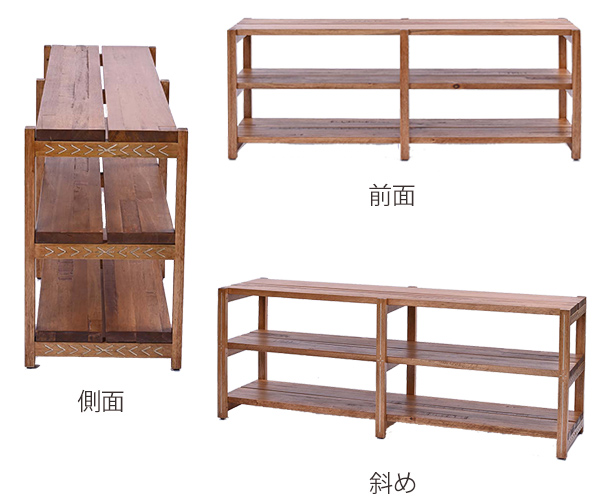 ハワイのアンティークショップにディスプレイされているような、ヴィンテージ感のある3段オープンラックです。ぬくもりのある天然木を使用しているので、様々なお部屋のテイストに馴染みます。