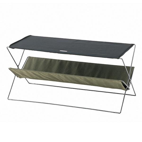 アウトドア テーブル フォールディング ( レジャー キャンプ ピクニック アウトドアテーブル 机 折りたたみテーブル 簡易テーブル コンパクト 長方形 シンプル ラック付き 収納付き 収納棚 折りたたみ ) 【 グリーン 】
