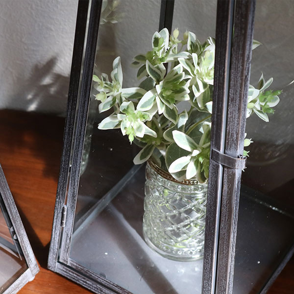 中にLEDキャンドルとグリーンを忍ばせてもナチュラルで落ち着いた雰囲気を演出できそうです。