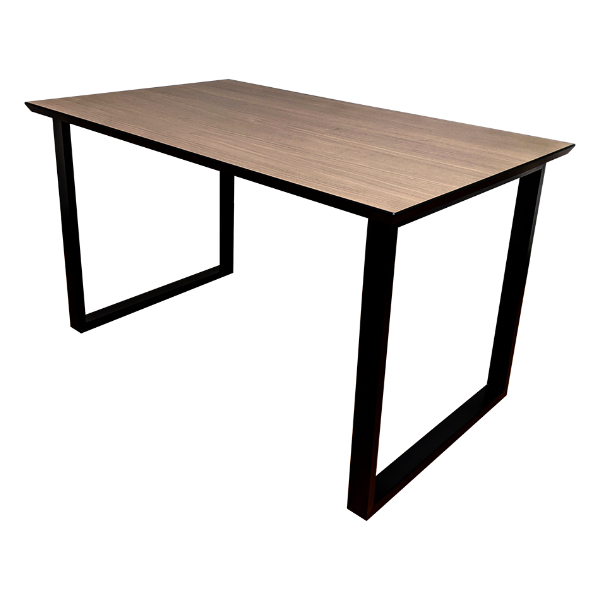 | すっきりシンプル 天板は船底型に加工を施し、黒いフチにすることで、スッキリとした印象に仕上げてあります。 | モダンな雰囲気 木目調の天板とスチールの脚とのバランスも良く、機能的な性能に加えモダンな見た目もこだわっています。 |