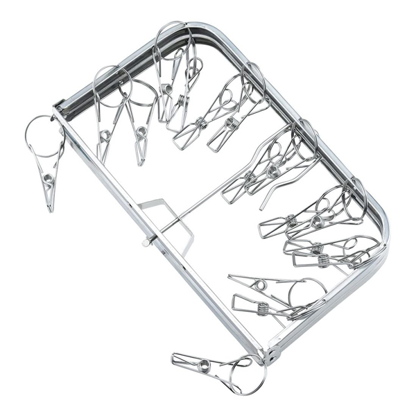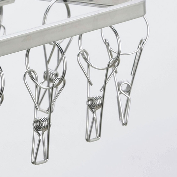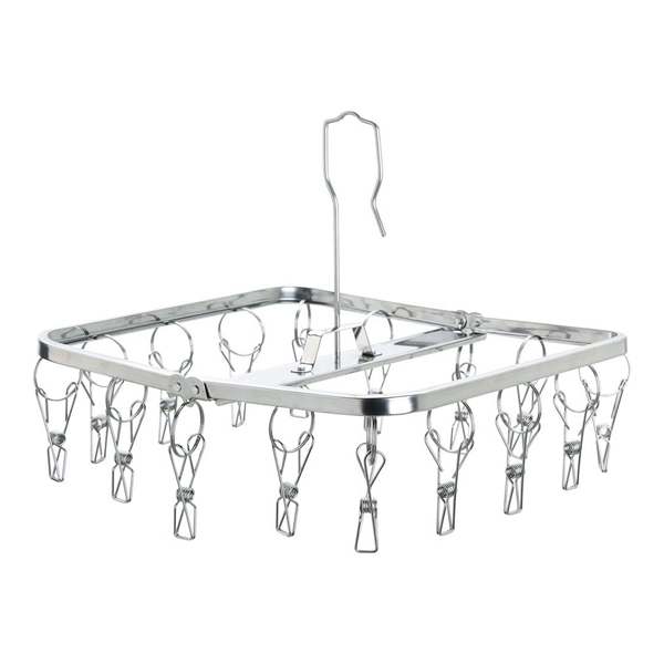 洗濯ハンガー ステンレス 角ハンガー からみにくいステンレスハンガー 16ピンチ ハンガー ( 物干しハンガー ピンチハンガー 絡みにくい 洗濯物干し 室内干し 部屋干し 洗濯用品 ランドリー 16P ステンレス製 軽量 コンパクト )