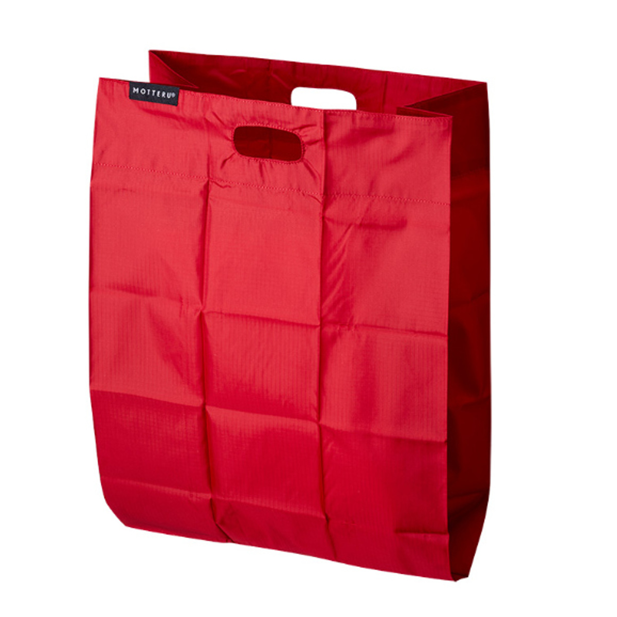 エコバッグ 名刺サイズ 折り畳み MOTTERU モッテル ポケットスクエアバッグ ( マイバッグ エコバック ショッピングバッグ サブバッグ メンズ カードサイズ 折りたたみ マチ付き マチ広 コンパクト 無地 コンビニ お弁当 男女兼用 ) 【レッド】