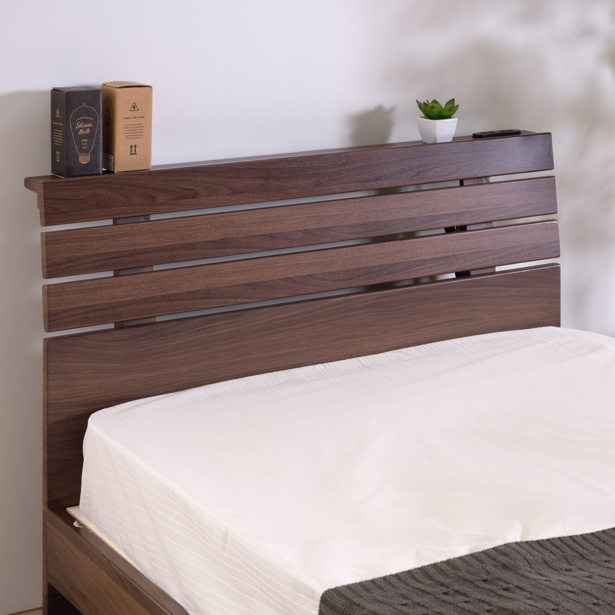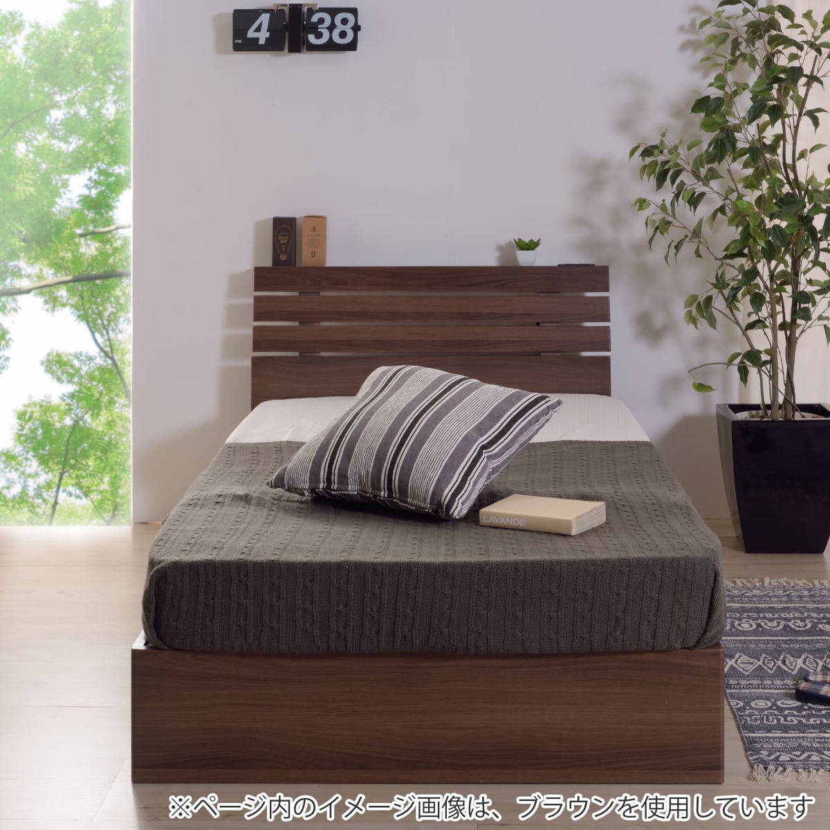 ヘッドボードの前面が、細い板の組み合わせですのこ状になっています。お部屋に置いた時の圧迫感を軽減して、お部屋をスッキリとした印象にしてくれます。