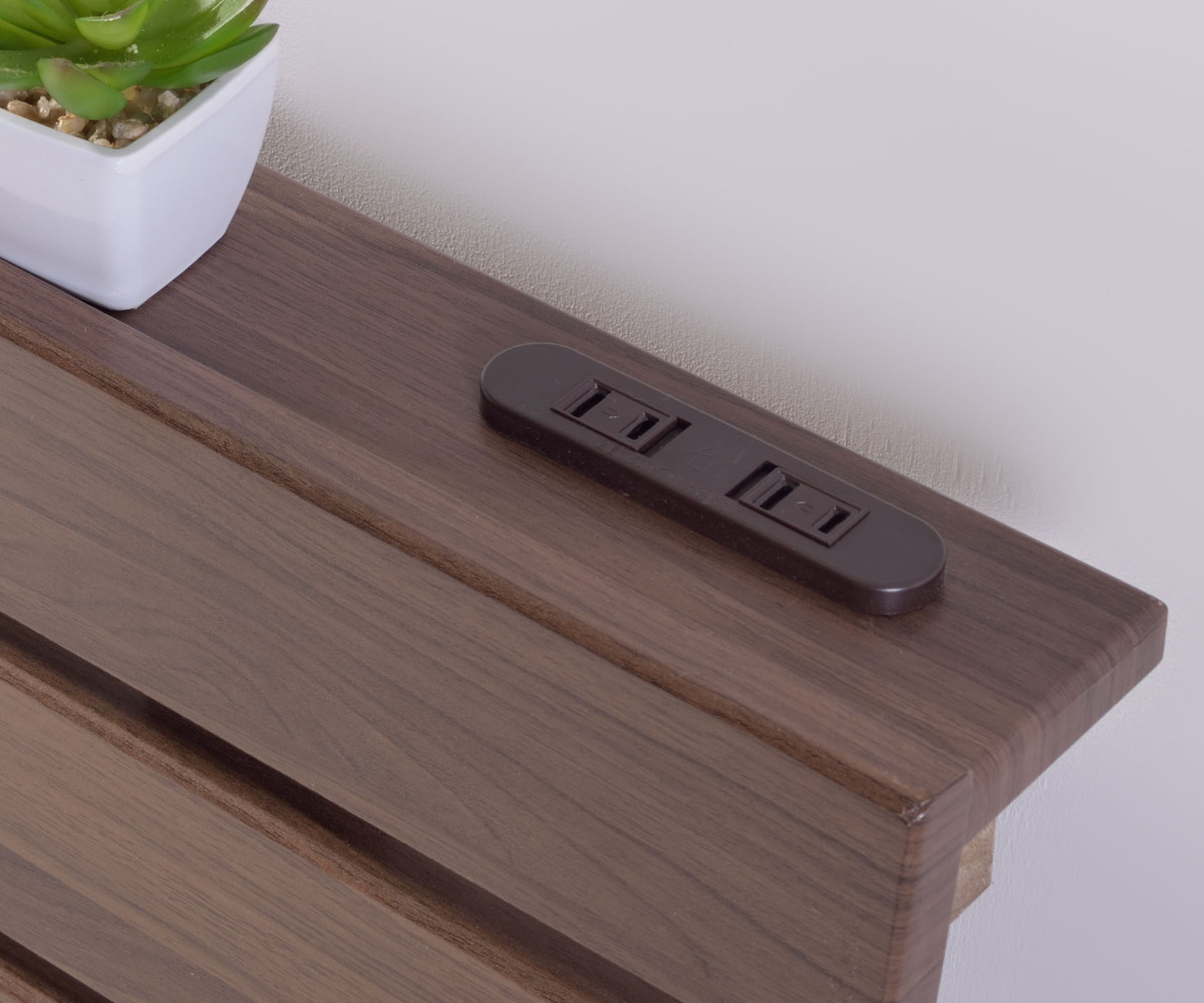 スマートフォンやタブレットなどを充電できる便利なコンセントが2口付いています。ホコリの侵入を防ぐスライド式なので寝具まわりでも安心してお使いいただけます。