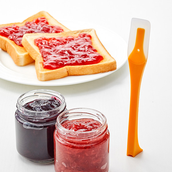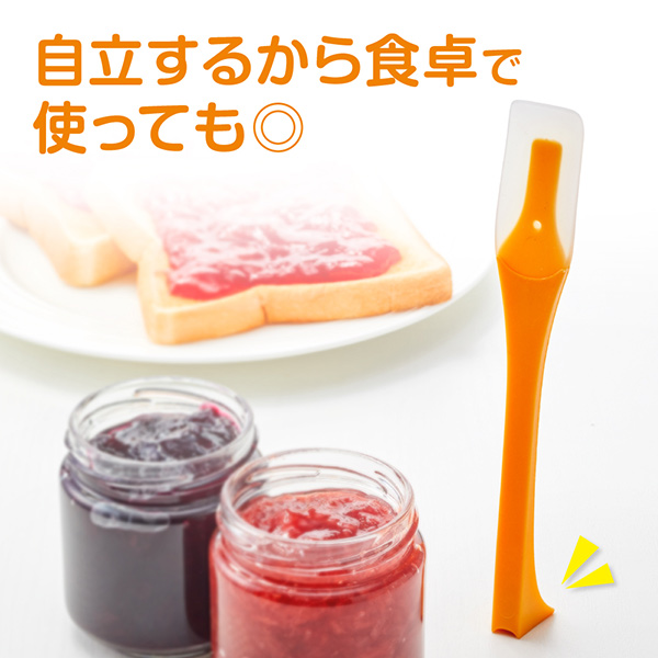 ジャムを瓶に残さずかきだせるシリコンスプーンです。ヘラ形状にもなるので、すくったジャムをそのままパンに乗せて塗ることが出来ます。
