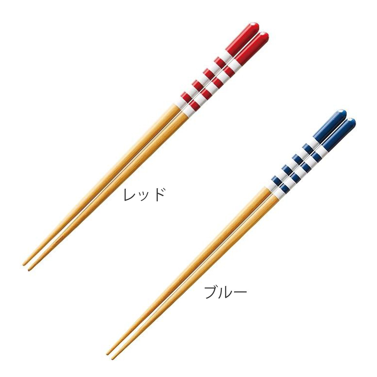 箸 21cm 23cm 食洗機対応 ナチュラル 天然木 木製 日本製 ( お箸 はし おはし ハシ カトラリー ブルー レッド ボーダー柄 自宅用 プレゼント 普段使い おしゃれ 国産 ) 【レッド】