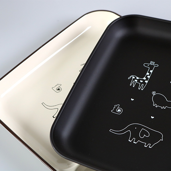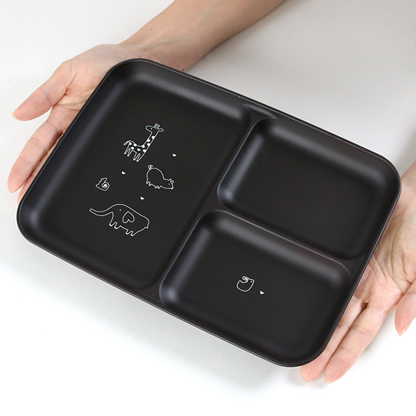 可愛い動物のイラストが描かれたランチプレートです。おにぎりやパン、副菜を盛りつけたワンプレートランチにおすすめです。落としても割れにくい樹脂製なので、お子さまの日常使いに最適です。モノトーンカラーとシンプルなイラストで、お部屋の雰囲気にもしっくりと溶け込みます。大人用の食器とカラーを合わせて、お揃い風にしても良いですね。