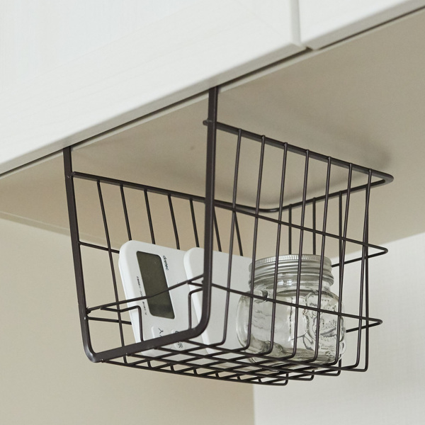 吊り下げ戸棚に差し込むだけで収納スペースを作ることができる深型タイプの収納ラックです。調味料やキッチンスケールなどのキッチン小物類を収納でき、棚や引き出しから探す手間なくサッと取り出すことができます。戸棚の下を有効活用して収納スペースを作ることができるので、キッチンがコンパクトでキッチン小物類の収納場所に困っていた方にもおすすめです。